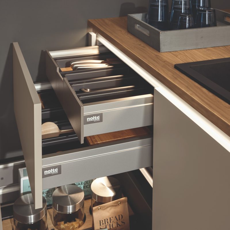 The LEAF range by Nolte Kitchens celebrates the beauty of nature through innovative design. Featuring an authentic wood reproduction made of melamine resin, the LEAF’s surface captures the tactile texture and depth of real wood grain, delivering both warmth and durability in perfect balance.